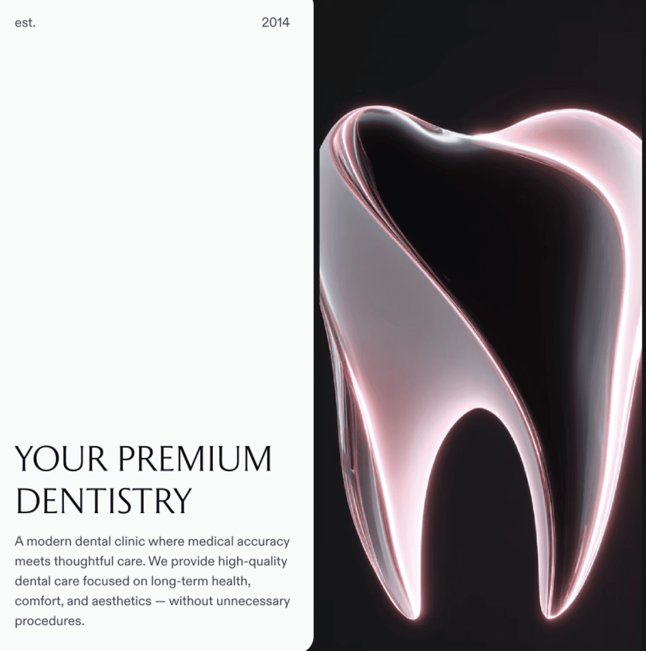 a) Developed a clean, bento-style layout system to present complex dental services in a structured, approachable, and premium format.